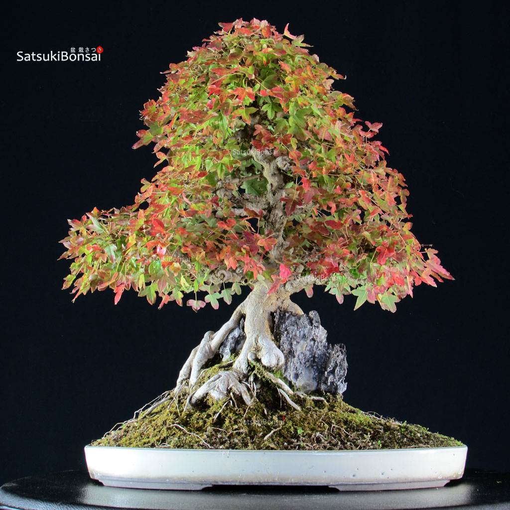 Bonsai di Acer Buergerianum, Kaede (Acero tridente) su roccia. Ramificazione fine, roccia Ibigawa.
