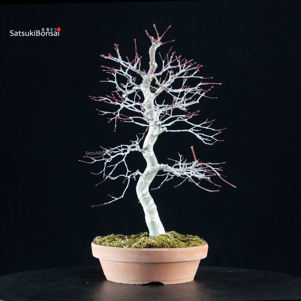 Bonsai di acero palmato Deshojo. Varietà dal fogliame primaverile color rosso intenso. Fogliame verde durante la stagione estiva e rosso fuoco durante l’autunno.