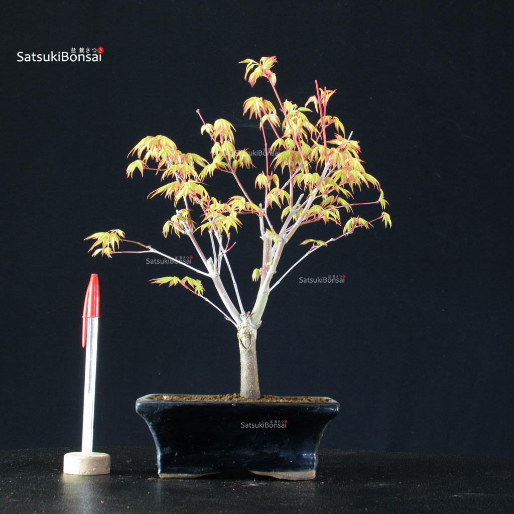 Bonsai di acero palmato varietà Katsura da innesto. Fogliame arancione a primavera, verde chiaro durante l’estate, rossa in autunno.