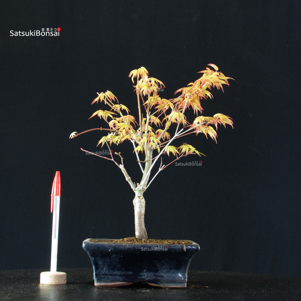 Bonsai di acero palmato varietà Katsura da innesto. Fogliame arancione a primavera, verde chiaro durante l’estate, rossa in autunno.