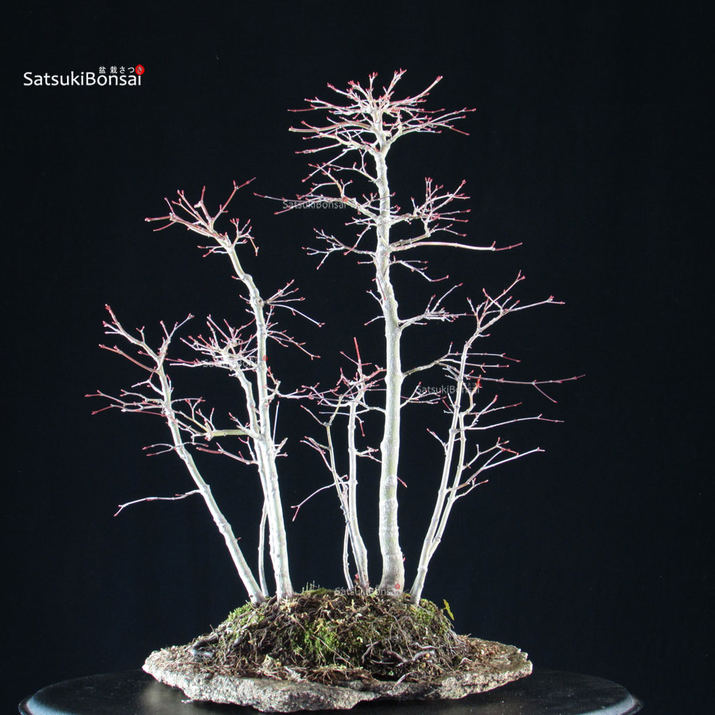 Bonsai bosco di acero palmato Yamamomiji su lastra di kurama (granito), originale.