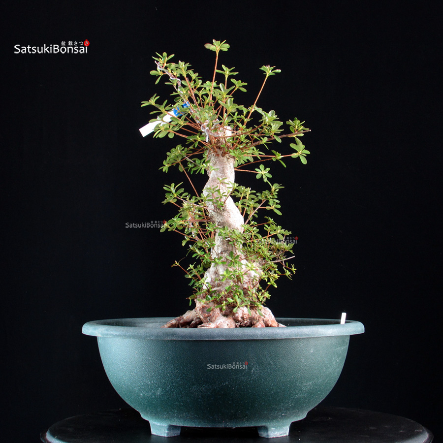 Pre-Bonsai di azalea Satsuki. Varietà ASHAI NO IZUMI. Fiore bianco, rosa e rosso.