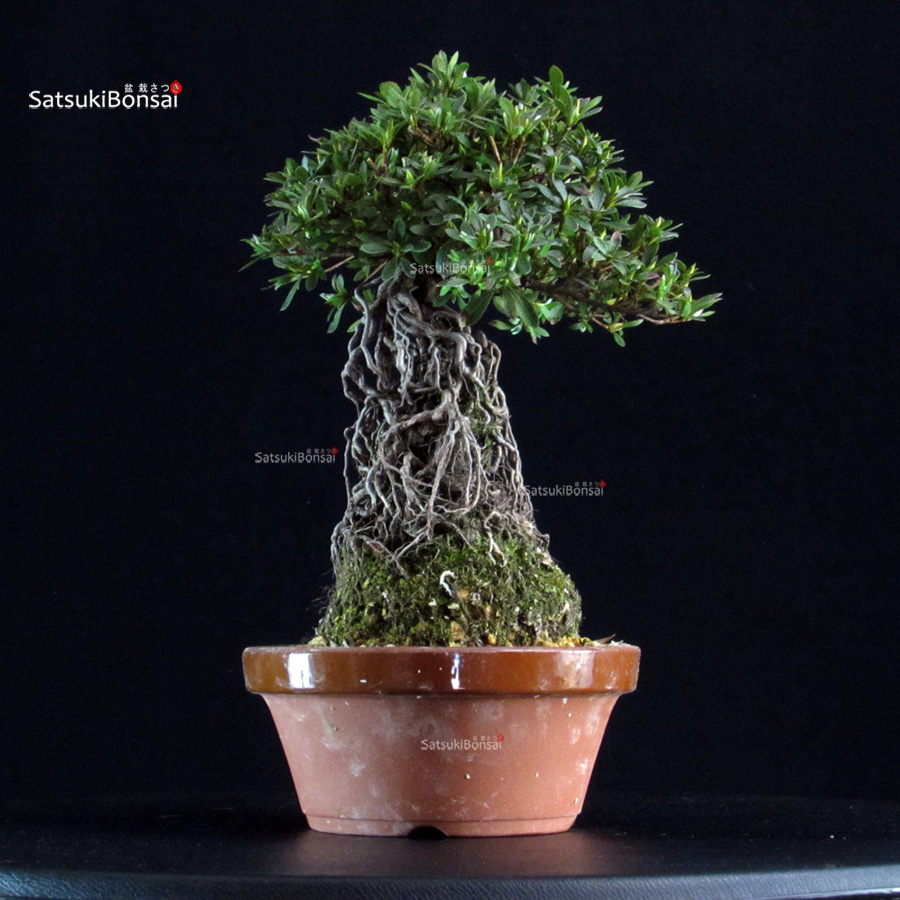 Bonsai esemplare di azalea Satsuki. Varietà MISORA, fiore rosa.