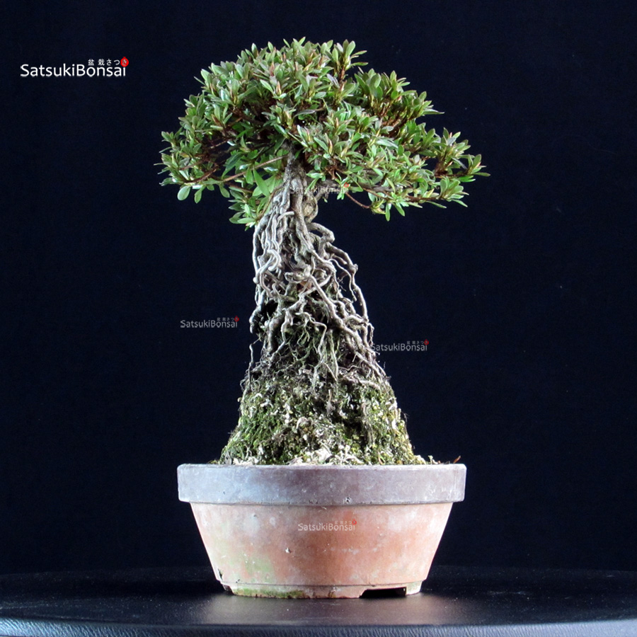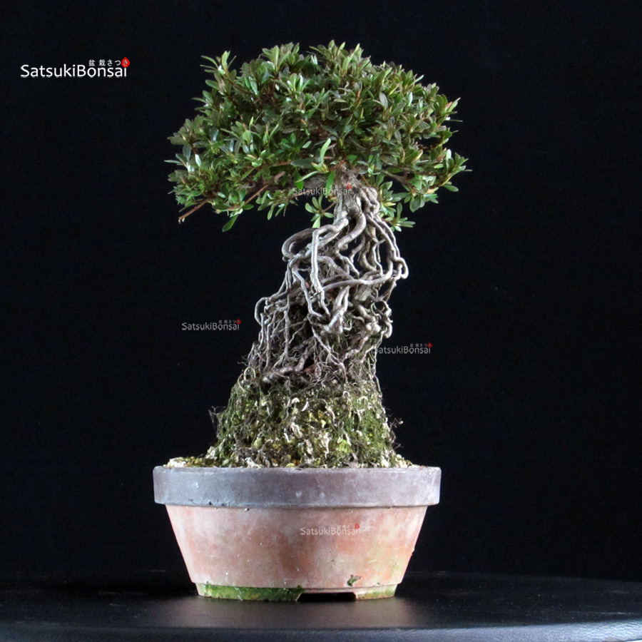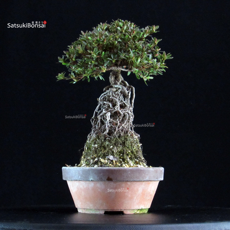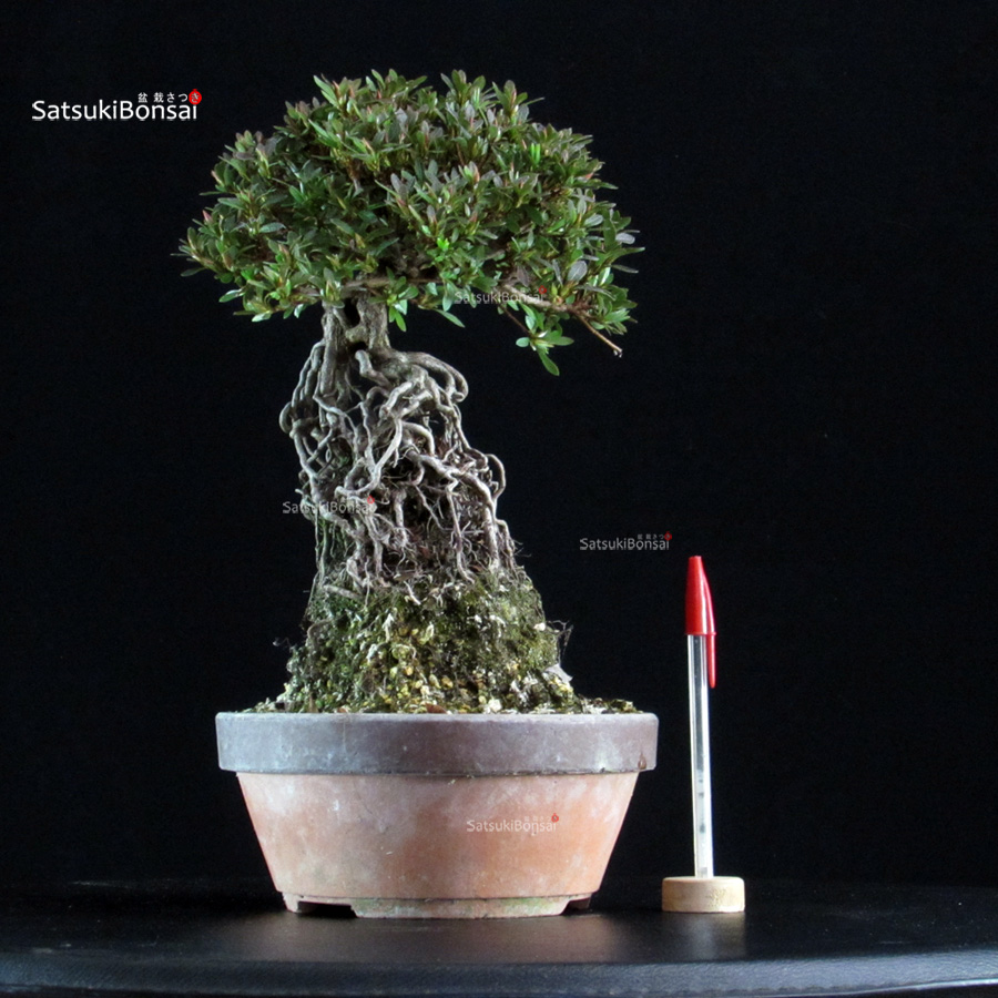 Bonsai esemplare di azalea Satsuki. Varietà NYOHOZAN, fiore rosa.