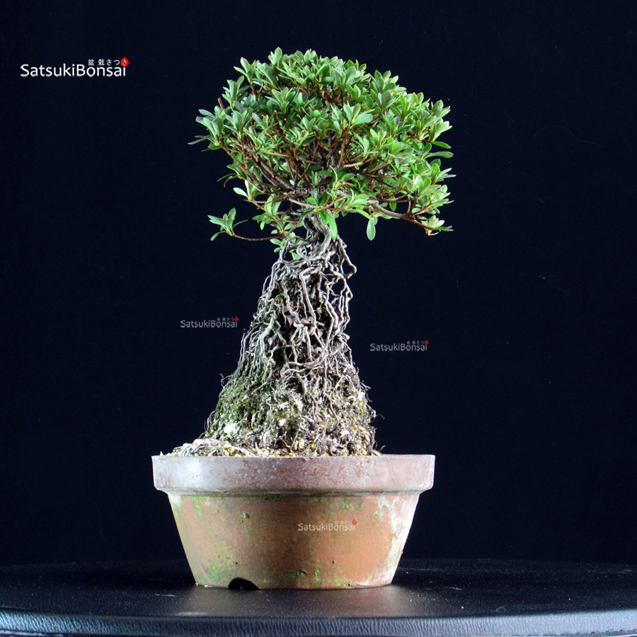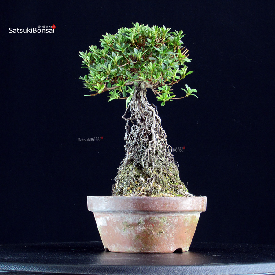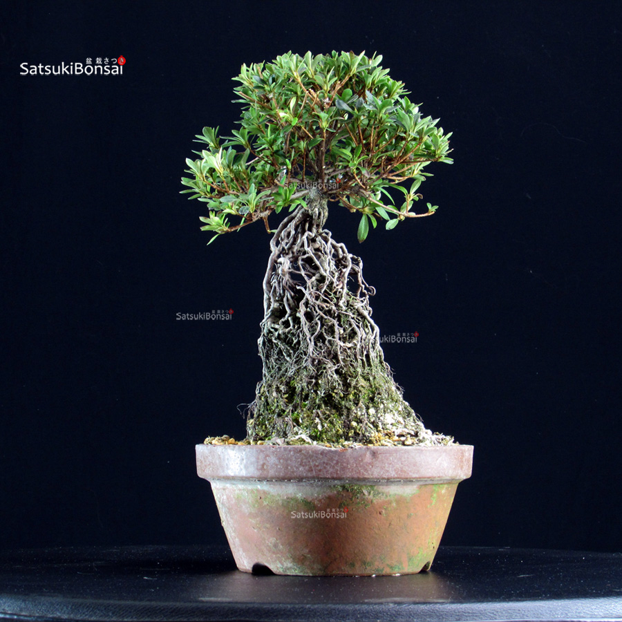 Bonsai esemplare di azalea Satsuki. Varietà SAKURAHIME, fiore rosa con centro bianco.