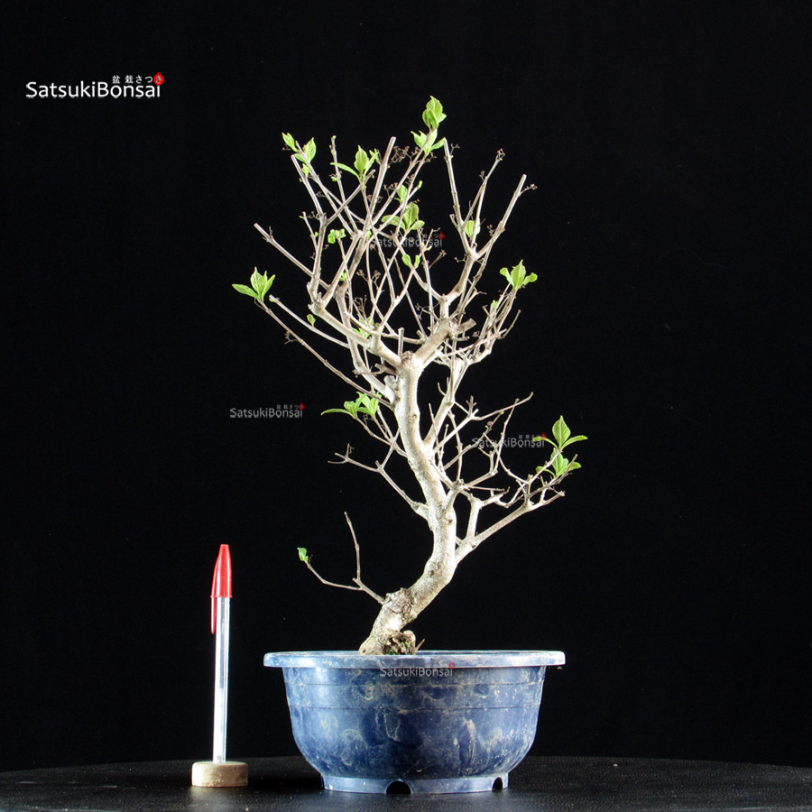 Bonsai di Callicarpa Japonica. Produce piccoli fiori violaceo-rosati riuniti in grappolo molto profumati, che danno seguito a bacche di un paio di millimetri di diametro a maturazione viola intenso, persistenti sull’albero fino a Gennaio.