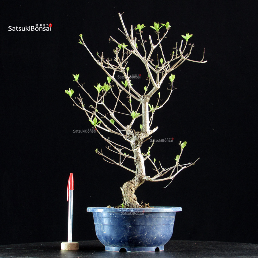 Bonsai di Callicarpa Japonica. Produce piccoli fiori violaceo-rosati riuniti in grappolo molto profumati, che danno seguito a bacche di un paio di millimetri di diametro a maturazione viola intenso, persistenti sull’albero fino a Gennaio.